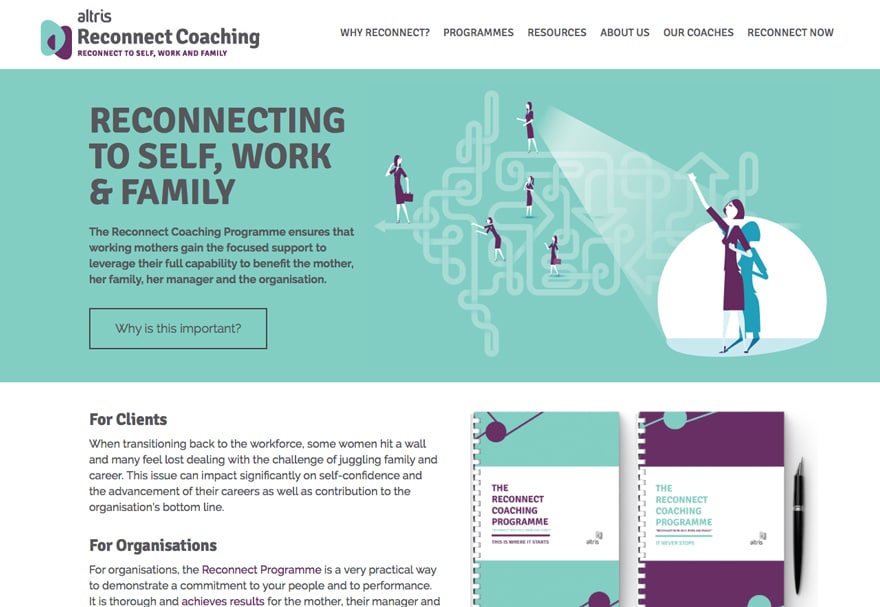 Envisage provide branding and website design services for Auckland-based mentoring workplace support Reconnect Coaching.